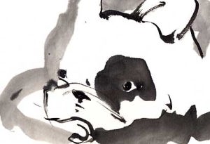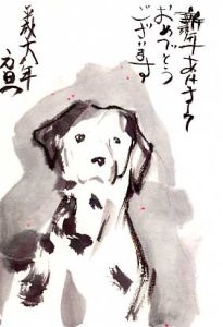白と黒の犬ですので墨で表現するにはうってつけ!