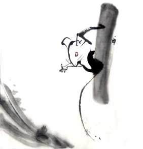 取りあえず墨で描いた物の、ネズミの形がおぼつかないので