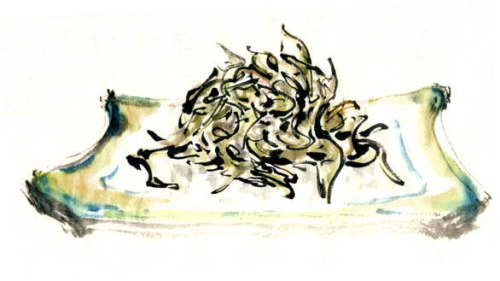「鯵ご飯」 焼いた干物の残りで炊き込みごはんを作ってしまおう、と 青魚の臭みがあるので、食べるときに薬味を混ぜます。 塩味がよく付いているのでおいしい、 お茶漬けにしてもおいしそうだな。 また作ろう。 臭みのあるものには薬味をがつん、とぶつけると 両方の旨みがぶつかり合って 一つの料理になります。 自分好みの薬味を見つけるのも お魚をおいしく食べるコツかも。 |